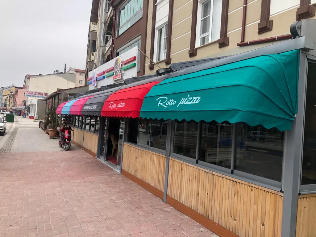 Cepheye estetik bir görünüm kazandırırken güneş kontrolü sağlayan, vitrin ve giriş alanlarında sık kullanılan şık tente sistemidir.